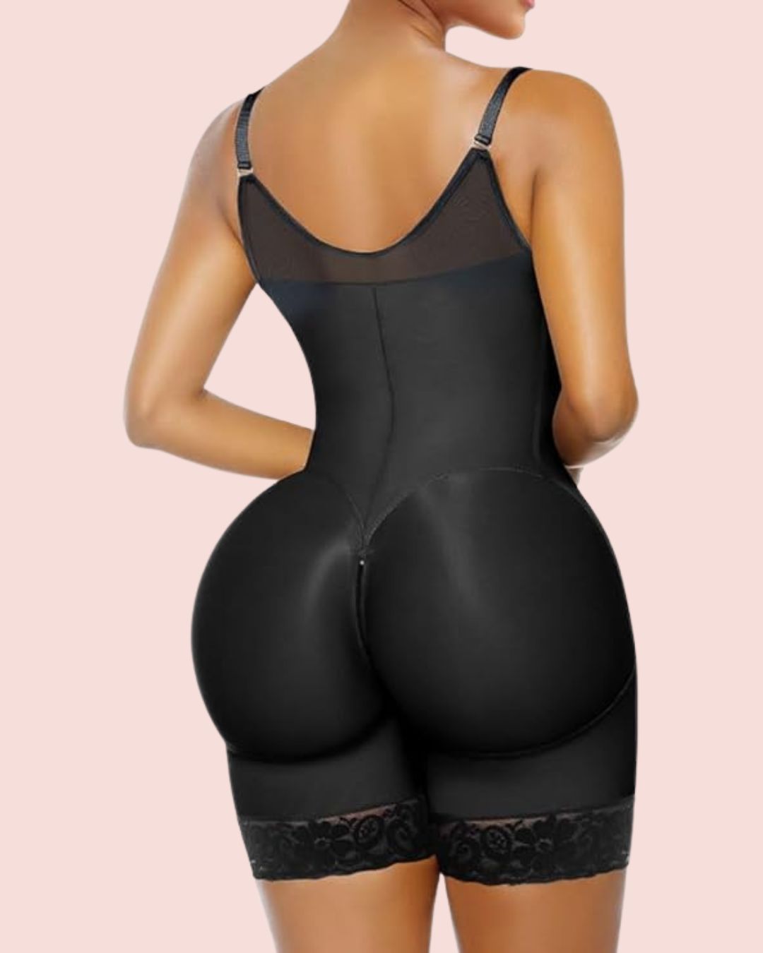 No more full undressing at bathroom breaks—thanks to a discreet zipper closure in the crotch area. The hip section features stretch-enhancing fabric that lifts and shapes the booty, while the lace-trimmed leg bands stay flat and seamless under clothes.
